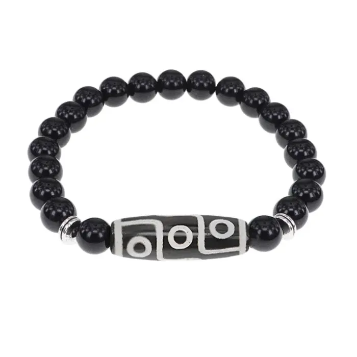 Браслет с 9-глазой бусиной Дзи и нат.камнем Черный агат BSDS8-15-23