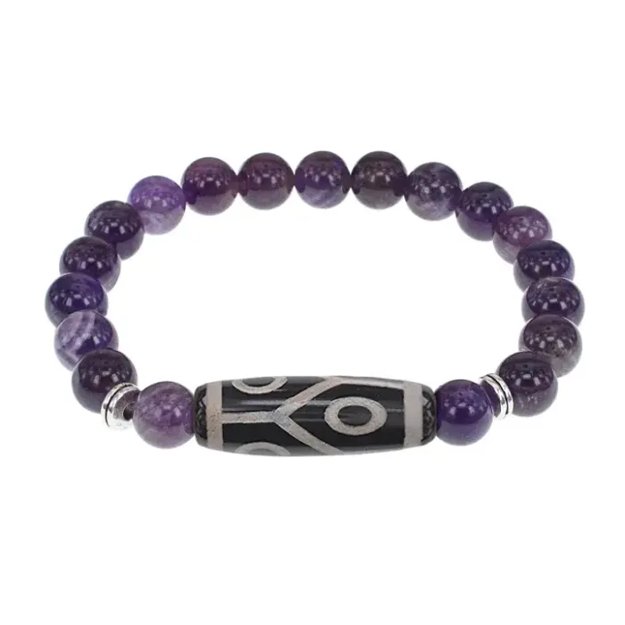 Браслет с 6-глазой бусиной Дзи и нат.камнем Аметист BSDS8-16-03