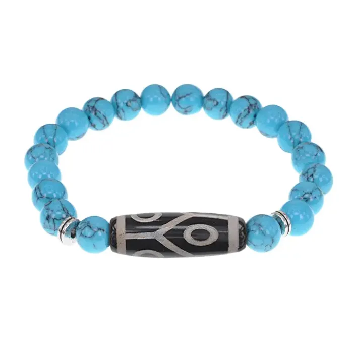 Браслет с 6-глазой бусиной Дзи и синт.камнем Бирюза BSDS8-16-05