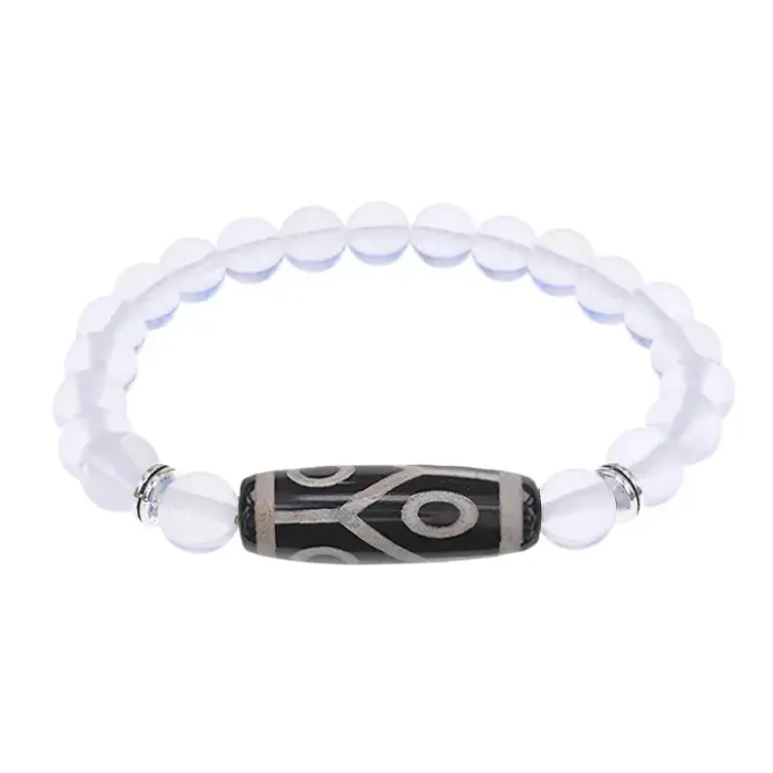Стрейч-браслет из синтетического камня с тибетской бусиной Дзи из натурального агата.