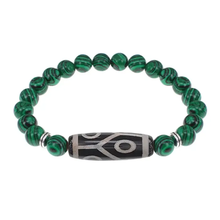 Браслет с 6-глазой бусиной Дзи и синт.камнем Малахит BSDS8-16-12