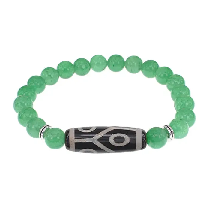 Стрейч-браслет из натурального камня с тибетской бусиной Дзи из агата.