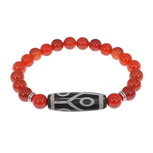 Браслет с 6-глазой бусиной Дзи и нат.камнем Сердолик BSDS8-16-17