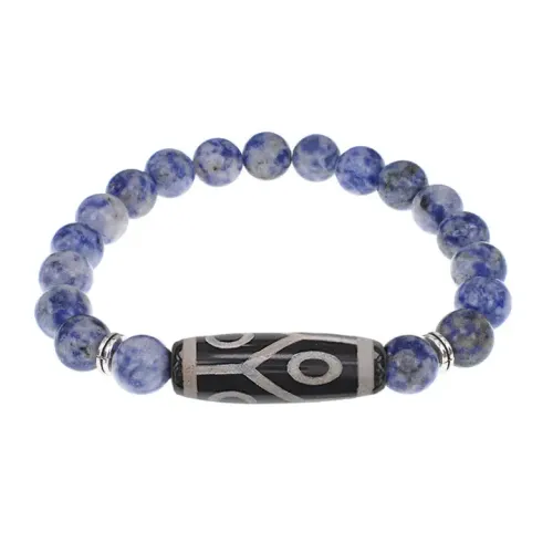 Стрейч-браслет из натурального камня с тибетской бусиной Дзи из агата.