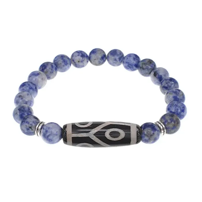 Браслет с 6-глазой бусиной Дзи и нат.камнем Содалит BSDS8-16-18