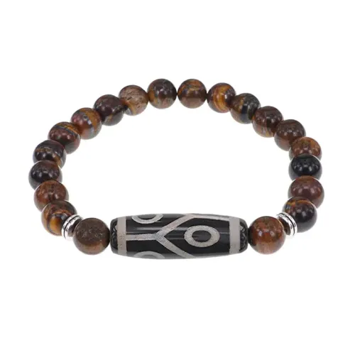 Стрейч-браслет из натурального камня с тибетской бусиной Дзи из агата.