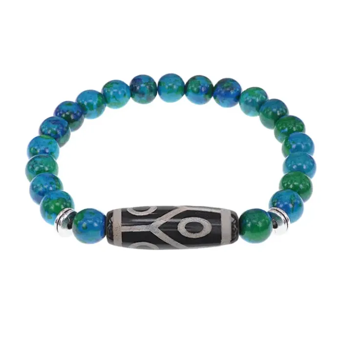 Браслет с 6-глазой бусиной Дзи и синт.камнем Хризоколла BSDS8-16-21