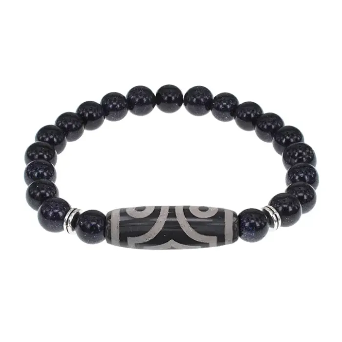 Браслет с 3-глазой бусиной Дзи и синт.камнем Синий авантюрин BSDS8-17-02
