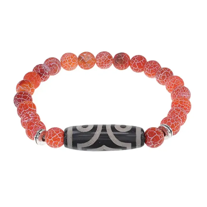 Стрейч-браслет из натурального африканского агата с тибетской бусиной Дзи.