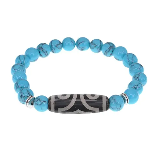 Стрейч-браслет из синтетического камня с тибетской бусиной Дзи из натурального агата.