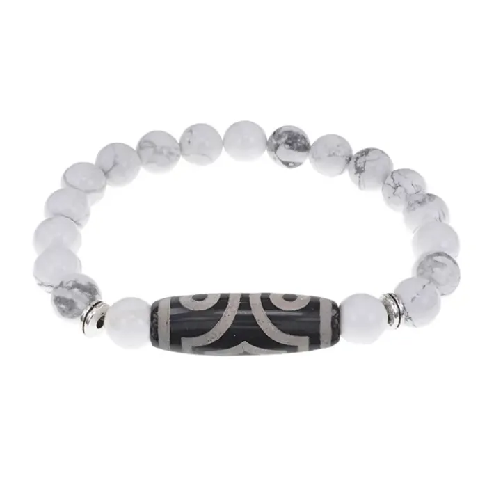 Стрейч-браслет для ношения, сочетающий тибетскую бусину Дзи из агата и натуральный камень кахолонг.