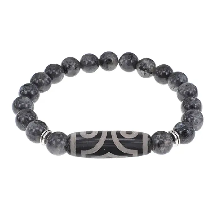 Стрейч-браслет из натурального камня лабрадор с тибетской бусиной Дзи из агата.