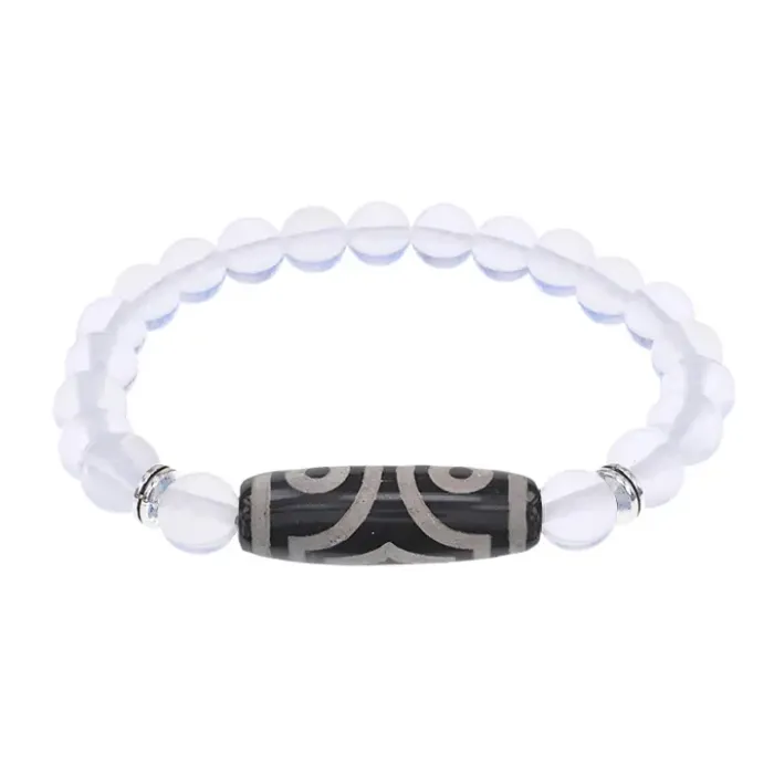 Стрейч-браслет с тибетской бусиной Дзи из агата и синтетическим камнем Лунный камень.