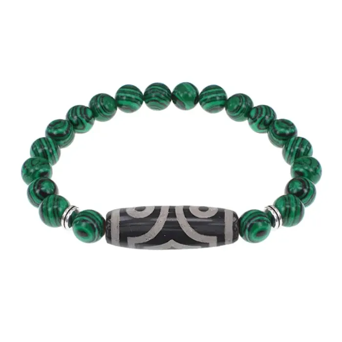 Браслет с 3-глазой бусиной Дзи и синт.камнем Малахит BSDS8-17-12