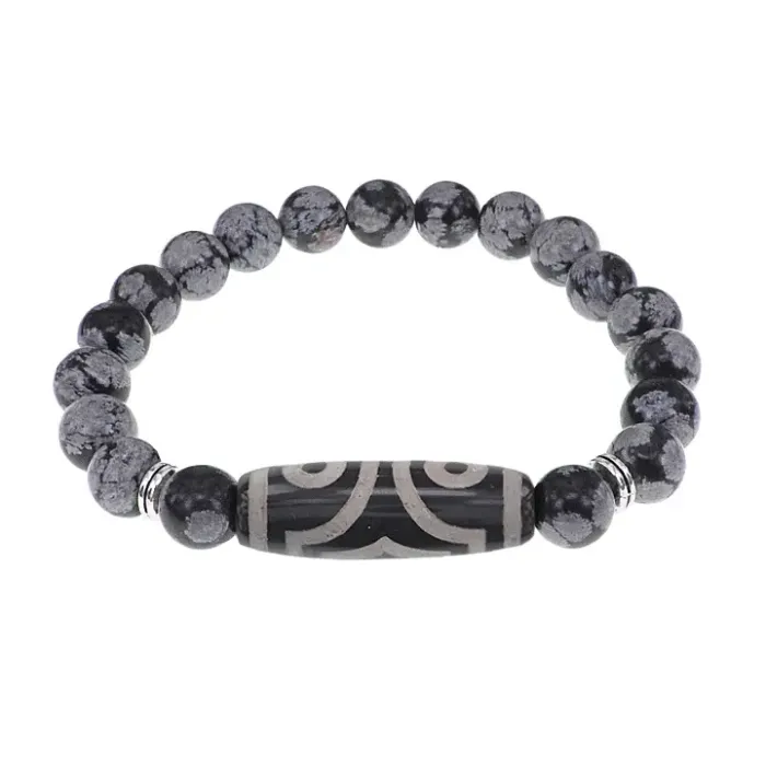 Браслет с 3-глазой бусиной Дзи и нат.камнем Снежный обсидиан BSDS8-17-14