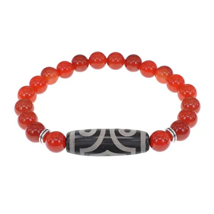Стрейч-браслет из натурального камня сердолика с тибетской бусиной Дзи из агата.