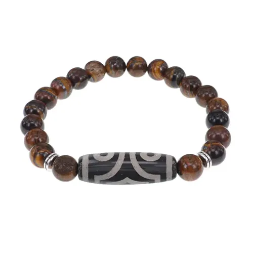 Браслет с 3-глазой бусиной Дзи и нат.камнем Тигровый глаз BSDS8-17-19