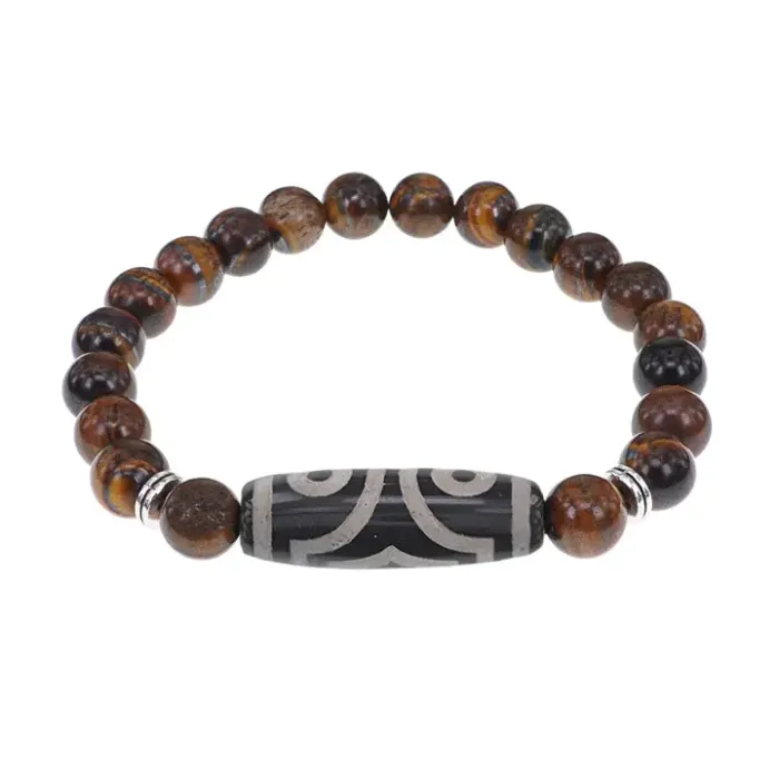 Стрейч-браслет из натурального камня с тибетской бусиной Дзи из агата.