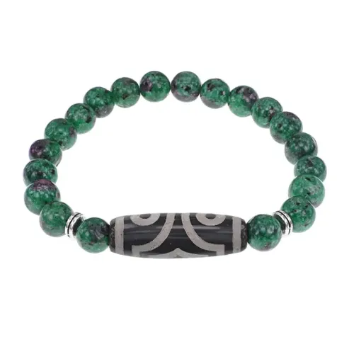 Стрейч-браслет из синтетического камня с тибетской бусиной Дзи из натурального агата.