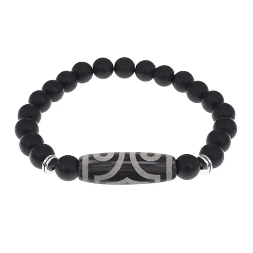 Стрейч-браслет из синтетического камня с тибетской бусиной Дзи из натурального агата.