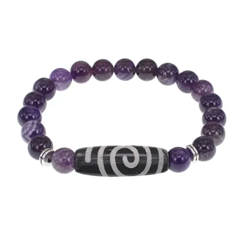 Браслет с Бусиной Дзи Спираль Вселенной и нат.камнем Аметист BSDS8-18-03