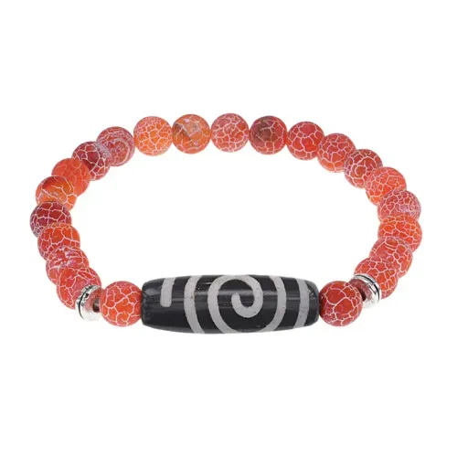 Стрейч-браслет для ношения на запястье из натурального африканского агата с тибетской бусиной Дзи «Спираль Вселенной».