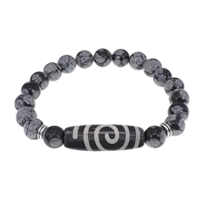 Браслет с Бусиной Дзи Спираль Вселенной и нат.камнем Снежный обсидиан BSDS8-18-14