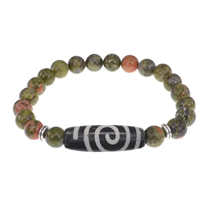 Браслет с бусиной Дзи Спираль Вселенной и нат.камнем Унакит BSDS8-18-20