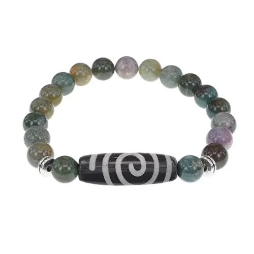 Стрейч-браслет из натурального камня яшмы с тибетской бусиной Дзи из агата.