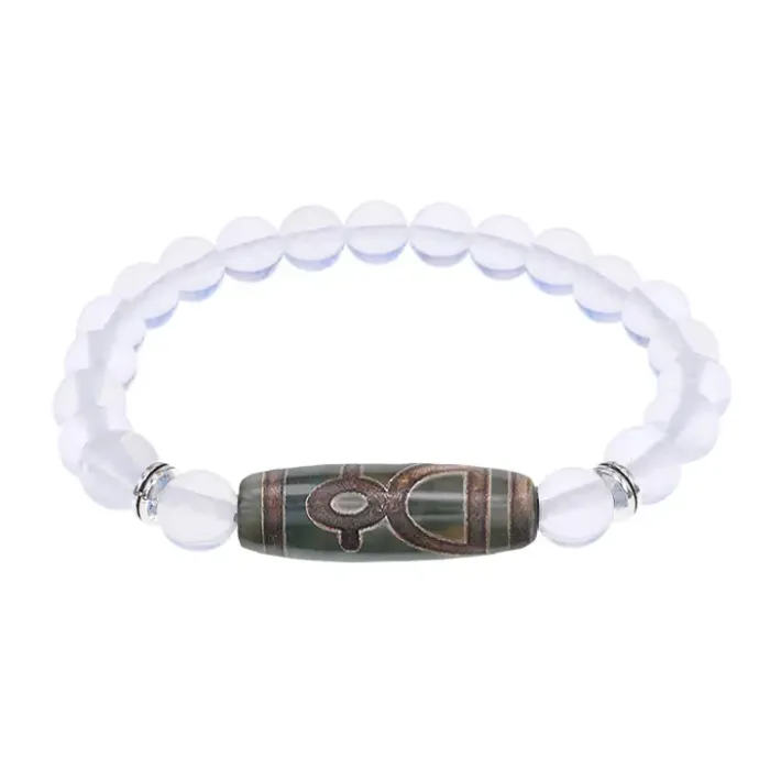 Браслет с бусиной Дзи Кубера и синт. камнем Лунный камень BSDS8-19-11