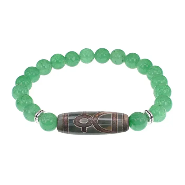 Стрейч-браслет из натурального камня с тибетской бусиной Дзи. Материал: агат и нефрит.
