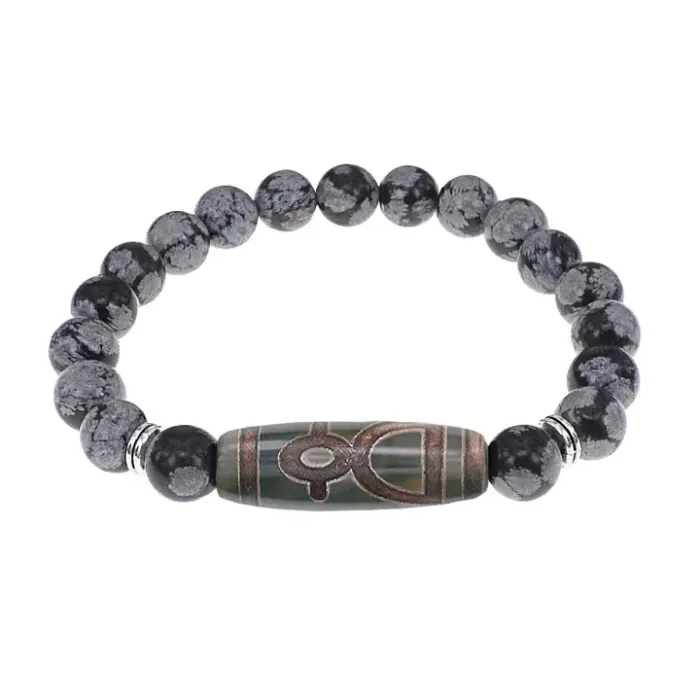 Браслет с бусиной Дзи Кубера и нат. камнем Снежный обсидиан BSDS8-19-14