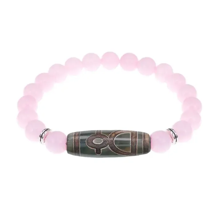 Браслет с бусиной Дзи Кубера и нат. камнем Розовый кварц BSDS8-19-15