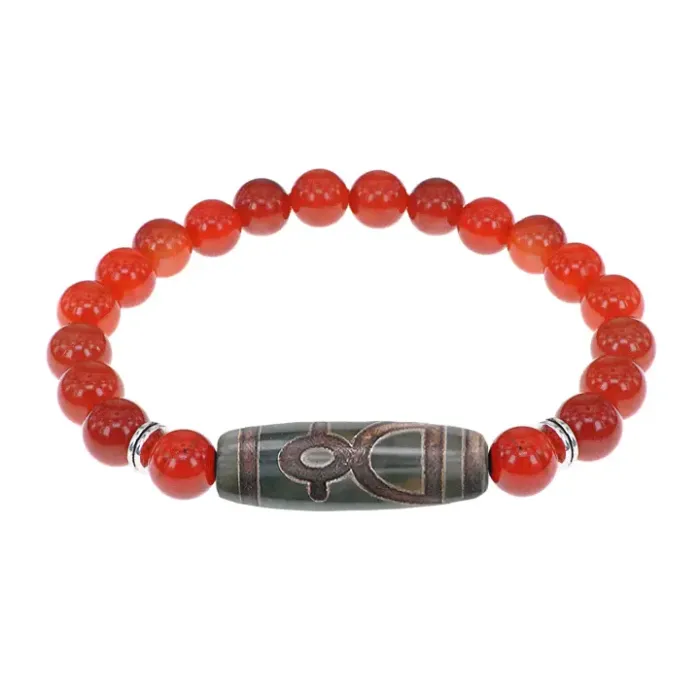 Браслет с Бусиной Дзи Кубера и нат.камнем Сердолик BSDS8-19-17