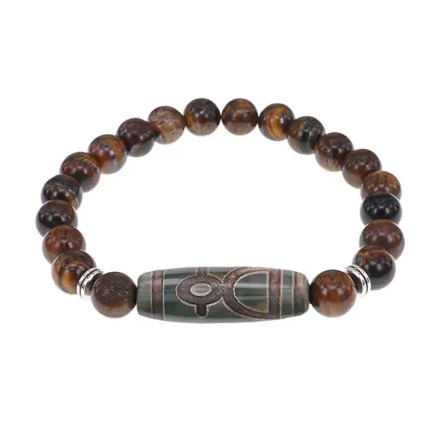 Браслет с бусиной Дзи Кубера и нат. камнем Тигровый глаз BSDS8-19-19