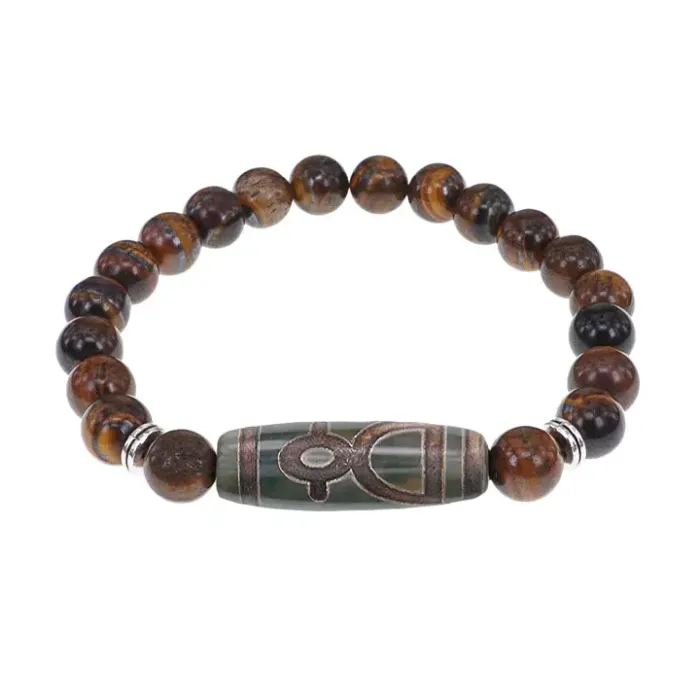 Стрейч-браслет для ношения, изготовленный из натурального камня тигровый глаз и агатовой бусины Дзи.