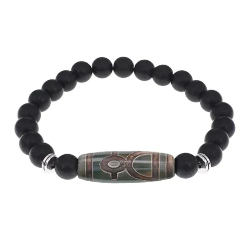Браслет с Бусиной Дзи Кубера и синт.камнем Шунгит BSDS8-19-24
