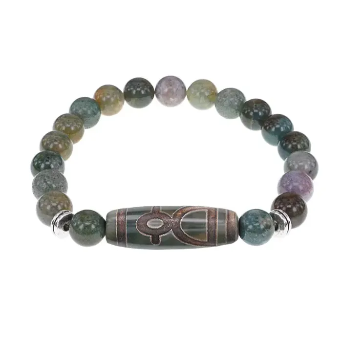 Стрейч-браслет из натуральной яшмы с тибетской бусиной Дзи Кубера из агата.