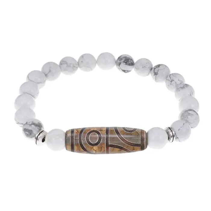 Стрейч-браслет из натурального камня кахолонг с тибетской бусиной Дзи из агата.