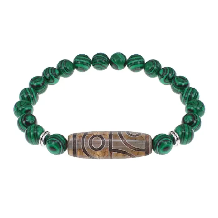 Браслет с 4-глазой бусиной Дзи и синтетическим камнем Малахит BSDS8-21-12