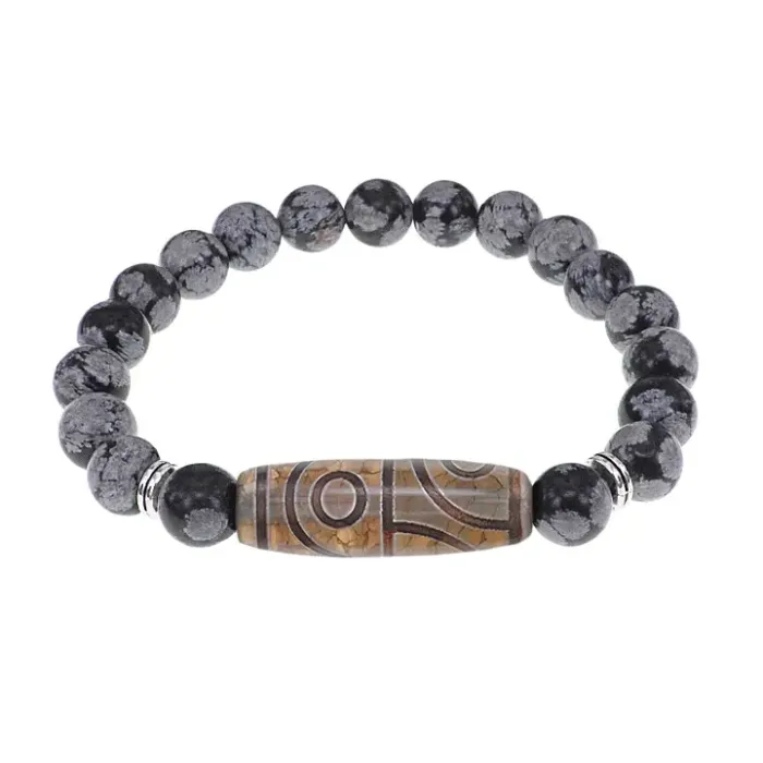 Браслет с 4-глазой бусиной Дзи и нат.камнем Снежный обсидиан BSDS8-21-14