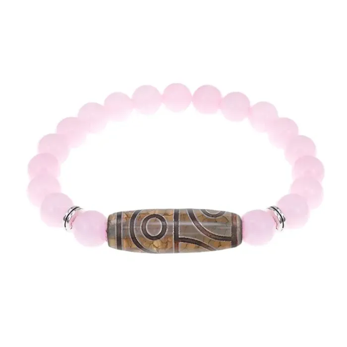 Браслет с 4-глазой бусиной Дзи и нат.камнем Розовый кварц BSDS8-21-15