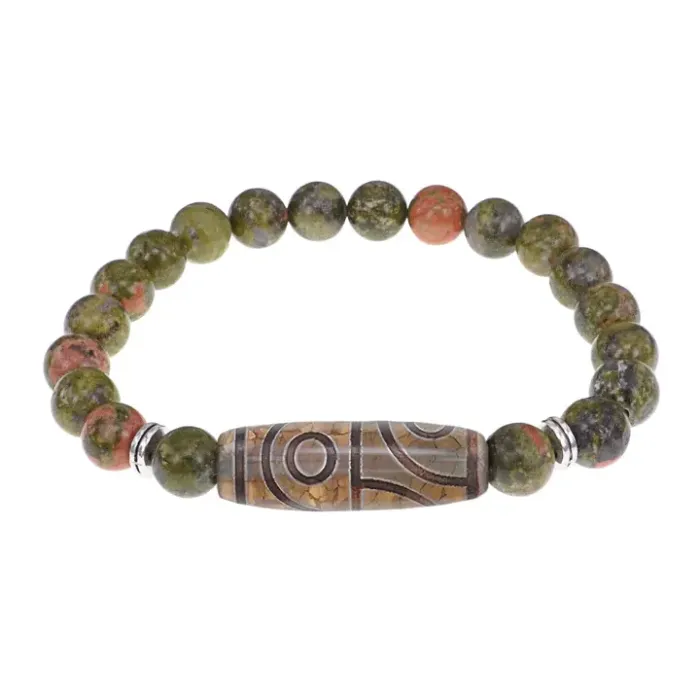 Стрейч-браслет из натурального камня унакит с бусиной Дзи из агата.