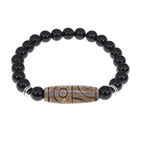Стрейч-браслет из натурального камня с тибетской бусиной Дзи из агата.