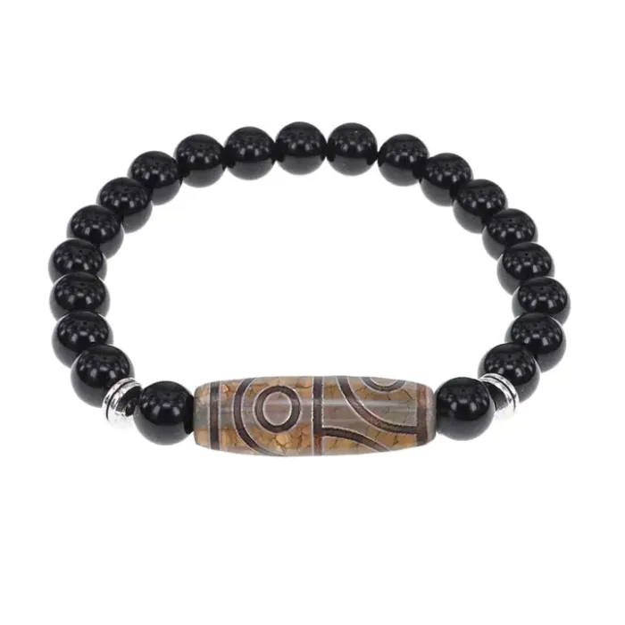 Браслет с 4-глазой бусиной Дзи и нат.камнем Черный агат BSDS8-21-23