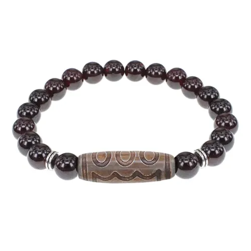 Браслет с 5-глазой бусиной Дзи и нат.камнем Гранат BSDS8-22-06