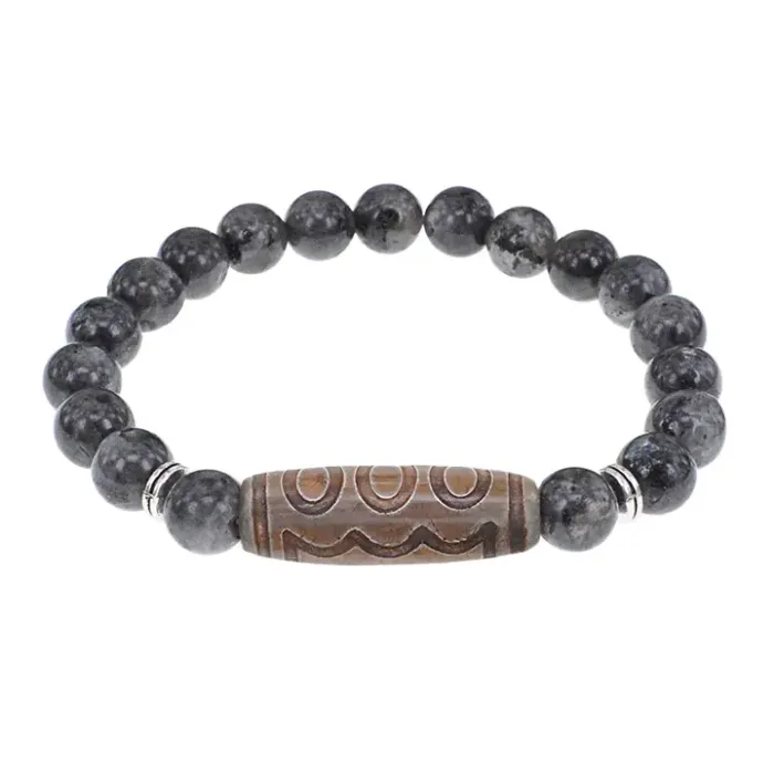 Стрейч-браслет из натурального камня лабрадор с тибетской бусиной Дзи из агата.