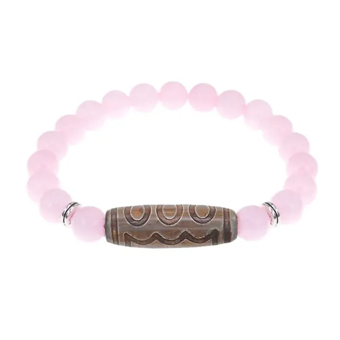 Браслет с 5-глазой бусиной Дзи и нат.камнем Розовый кварц BSDS8-22-15