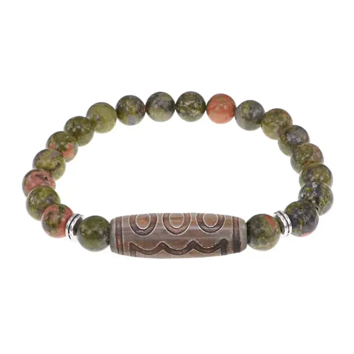 Браслет с 5-глазой бусиной Дзи и нат.камнем Унакит BSDS8-22-20