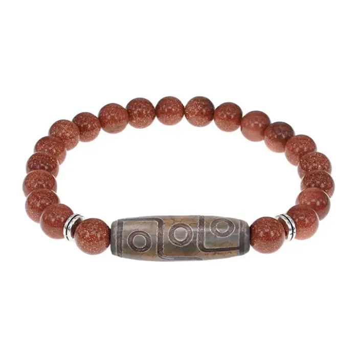Браслет с 9-глазой бусиной Дзи и синт.камнем Коричневый авантюрин BSDS8-23-01